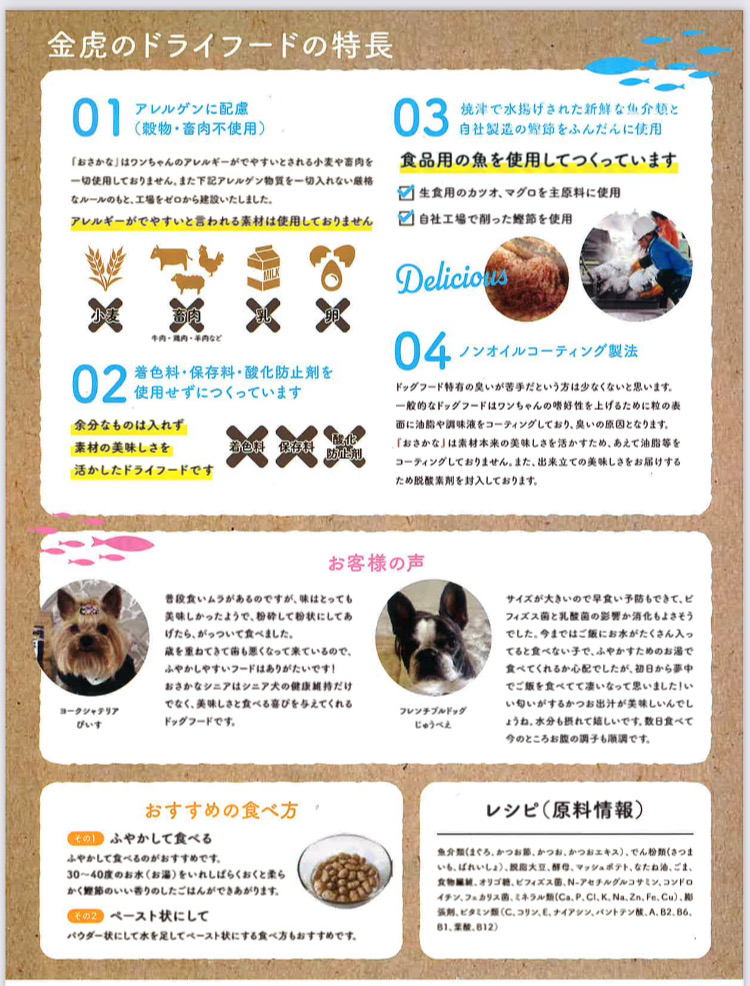 創業100年の老舗鰹節屋がつくった「おさかなごはんシニア」お肉、穀物が苦手なわんちゃんのための優しいごはんです。